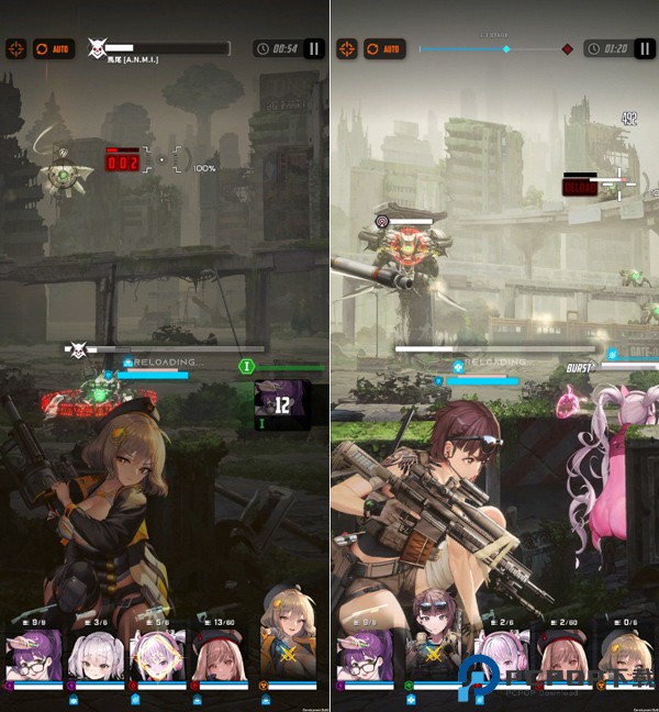 例如狙击可以开启准镜攻击远处的敌人,打中弱点的威力也特别的大。霰弹虽然射程很短,但可以一次攻击到多名目标。你必须依照关卡出现的敌人分配,更换不同的妮姬来作战。