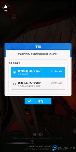 4、然后就是下载游戏数据以及语音包,接近2G,推荐WiFi环境下下载;
