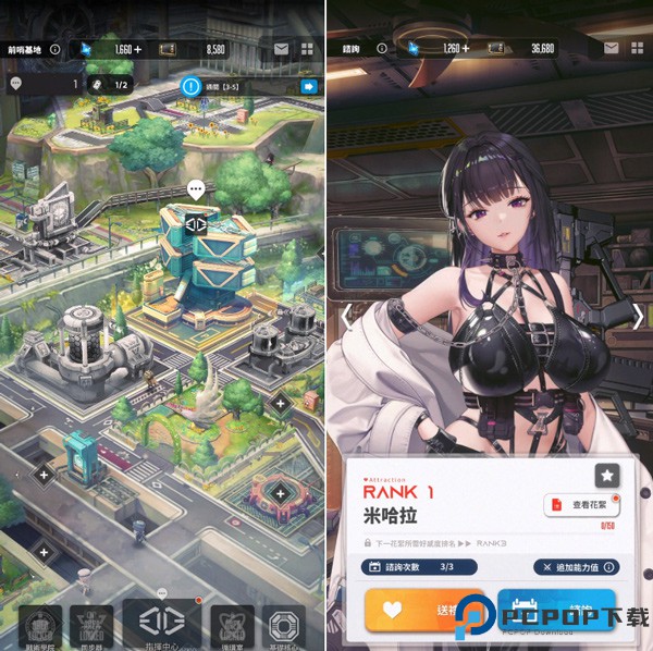 除了战斗之外,游戏内也设计了有趣的挂网和建筑玩法。你不只是可以在「前哨基地」内逐渐添增各种不同的建筑,借此强化和培养妮姬之外,在「前哨基地」中,还会依照玩家闯关的进度给予挂网奖励。另外你也可以去「指挥中心」内跟妮姬们谈谈心,借此提升好感度来提升她们的能力。