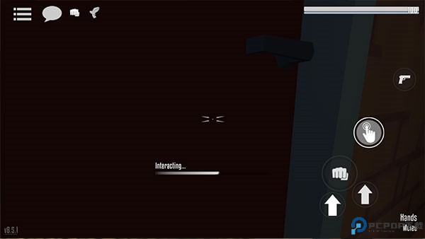 3、滑动屏幕控制视角方向,左边有隐形轮盘可以前进,右下角可以跳跃,点击拳头可以攻击。