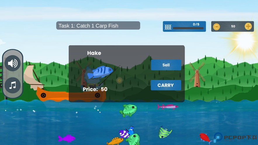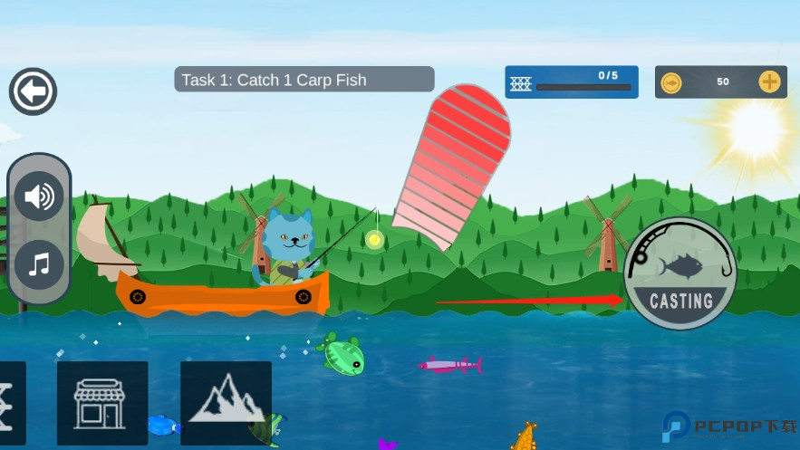 1、进入游戏后,玩家可通过钓取鲫鱼、鲤鱼等小型鱼类来赚取金币。