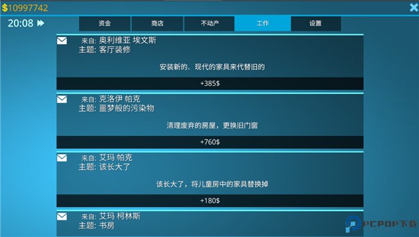 9、在工作板块中,拥有着大量的实际订单,附带详细的设计需要,你需要根据顾客的需求设计出合理的房间。