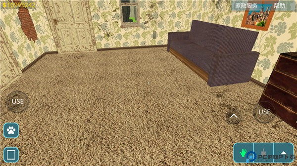 2、成功进入房间,点击右下角的这个图标可以使用道具来打扫垃圾;
