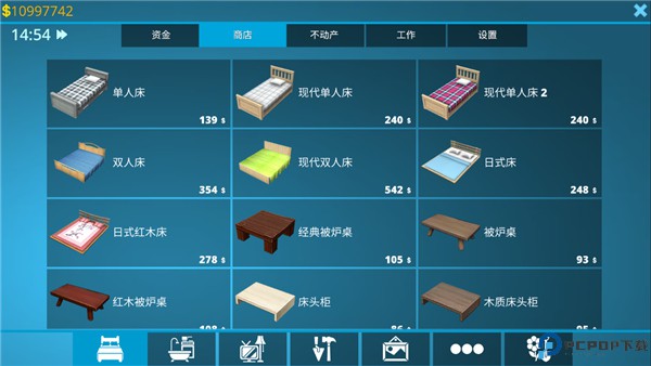 7、另外,点击下方的图标中还有着其他商店,在这里可以购买床、马桶、电视机、插板、电脑、汽车等一系列物品供大家购买,并进行布置;