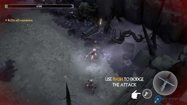3、进入关卡后左边控制角色的移动,右边是攻击和闪避。