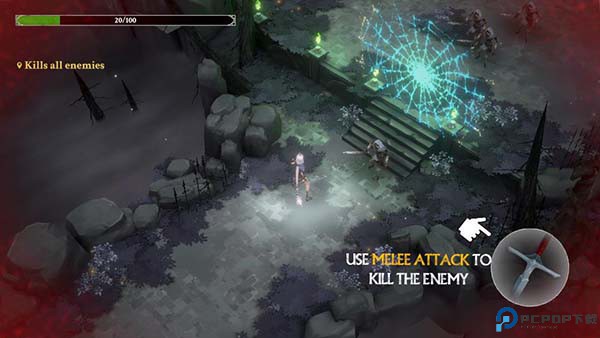 1、进入灵魂猎手地牢汉化版游戏后,左手控制角色移动