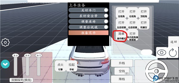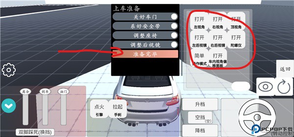 3、玩家可以打卡各种视角,做好上车准备,点击准备完毕开始模拟科目二考试。