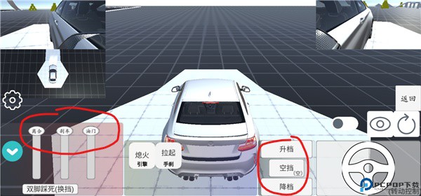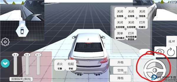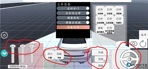 5、左下边的可以帮助玩家调整刹车,油门,换挡,控制方向盘等。