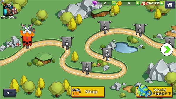 5、在主界面或地图选择界面点击“下一关”或“下一地图”。