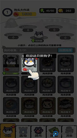 5、正如所见,该游戏是利用卡牌的方式去排兵布阵的,玩家可以收集很多类型的狗子。
