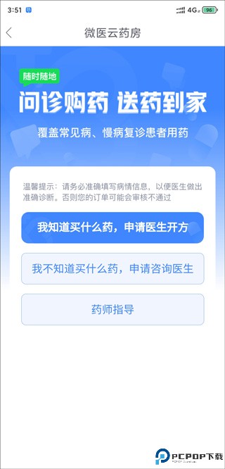 1、在软件主界面中,点击功能界面中的“问诊购药”按钮;