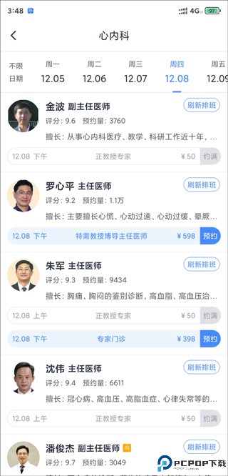 6、蓝色的部分显示这位专家可以预约的坐诊时间,我们选择需要就诊的时间,点击进入。