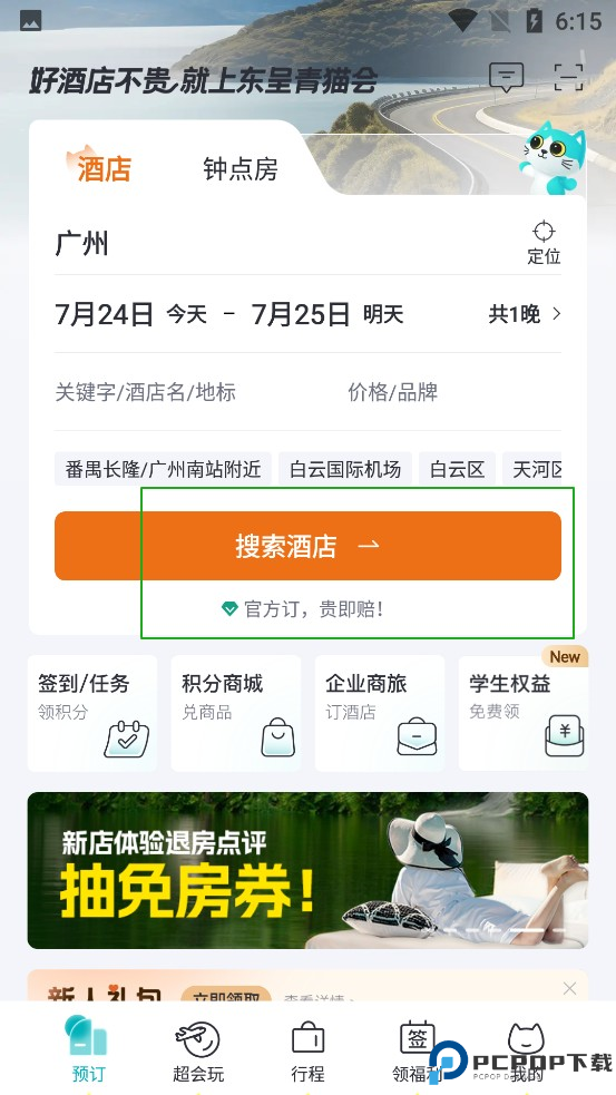 东呈青猫会是一款酒店预订软件,软件提供便捷的预订服务,在线订购酒店可以享受专属优惠,遍布全国30余个省份,给用户提供多个住宿选择,有各种订房优惠,从预订到入住再到离店,全程给用户提供优质的住宿体验,软件还会根据时间、位置、浏览习惯智能给用户推荐酒店,用户能看到真实的酒店点评,新用户还有礼包可以领取,1000元优惠券包+升房券。