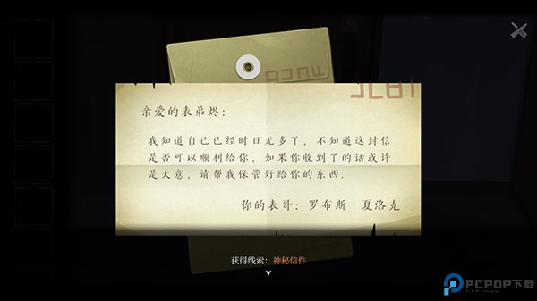 3、指引结束后,玩家控制角色走向门口,获得表哥夏洛克寄来的信件和U盘。