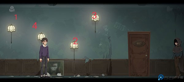 7、根据走廊灯光的顺序解开开启箱子的密码。