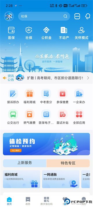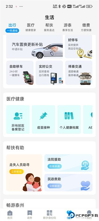 1、在本站下载并安装泰州通,进入首页可以查看各项功能