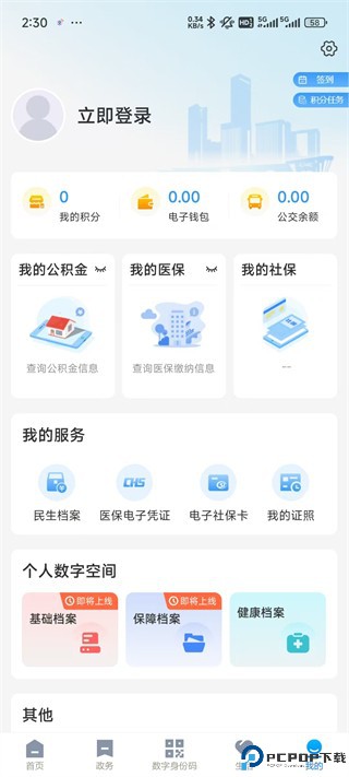 5、点击我的,可以登录app,查看个人服务等