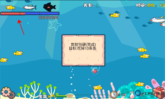 第九关:按住鼠标右键吸吃附近小鱼。