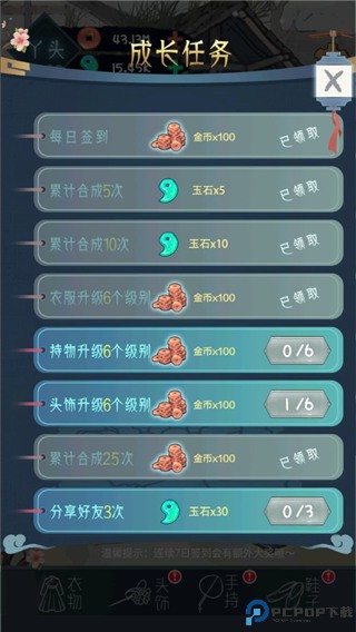 1、首先进入女帝成长计划游戏,点击合成头饰、衣物、手持还有鞋子均可升级
