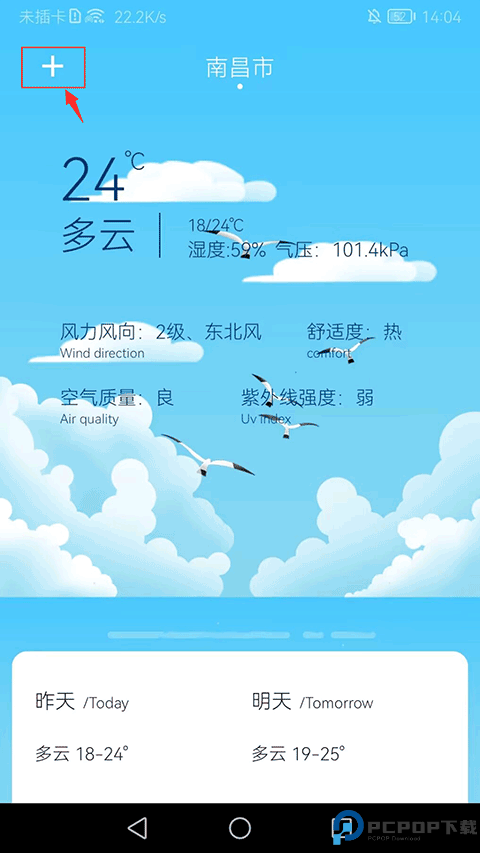 3、如果想要查看自己所在城市的天气状况,可以点击左上角“+”进行城市管理。