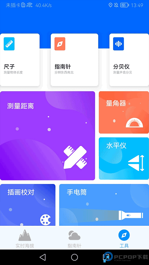 海拔测量仪是一款能够实时测量海拔高度的软件,软件能够精准测量所处位置的拔高度,非常适合在攀登高山、徒步旅行和其他户外活动使用,无需网络也能准确测量海拔和经纬度,还有指南针的功能,为您指引正确的前行方向,软件有提供24小时天气预报,能够提前查询天气,做好出行准备,软件还有噪音检测仪,测量距离,水平仪等功能,非常实用。