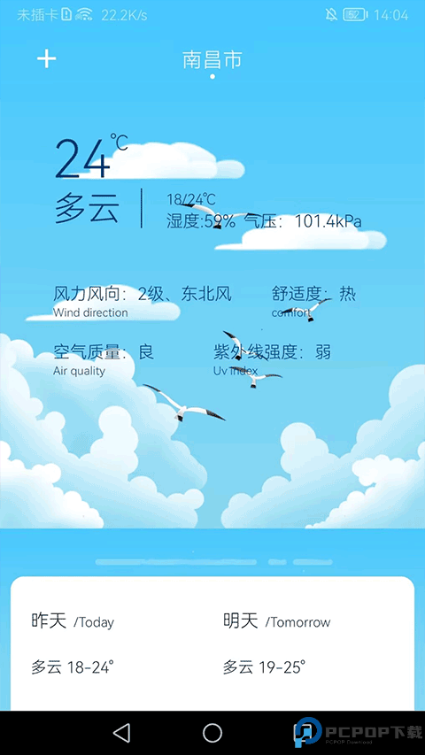 6、在天气预报页面滑动屏幕,即可查看查看自己所在城市的天气状况了。
