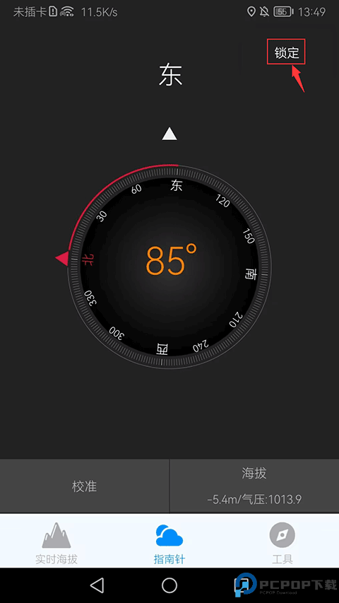 4、指南针的指向是根据用户的变动而实时改变的,如果你不想让他一直跳动,可以点击右上角的“锁定”。