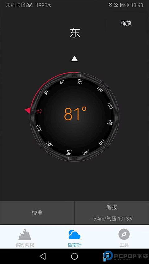 3、指南针会精准指引方向,同时在此页面也会显示海拔及气压。