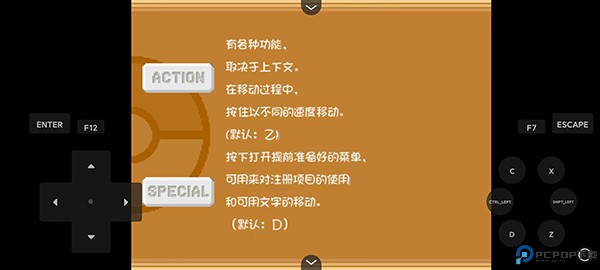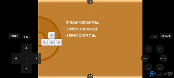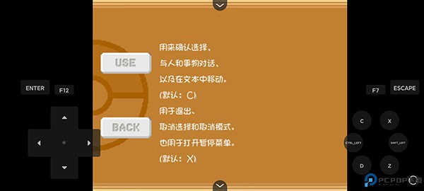 4、小编再来给大家讲解一下按键控制说明吧,左下角上下左右来移动角色你也可以用他们来选择项目和浏览菜单;“C”用来确认选择与人和事物对话,“X”用于退出、取消选择和取消模式以及打开暂停菜单;“Z”有各种功能,在移动过程中按住以不同的速度移动,“D”打开提前准备好的菜单和可用文字的移动。