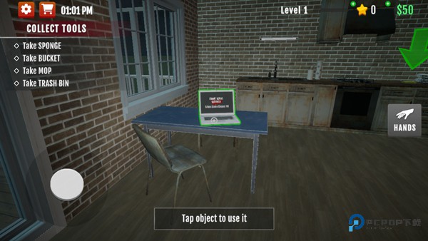3、购买完成后,在房间内找到已购买的清洁工具;