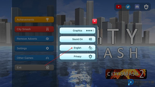 1、下载后打开进入游戏默认为英文,首先我们点击设置;