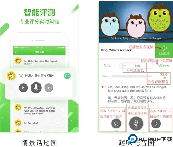 系统会针对录音进行智能评分,这样可以把握自己的口语发音;“趣味配音”可以通过给动画或电影配音吸引注意力,激发学习英语口语的兴趣,练习口语会事半功倍。