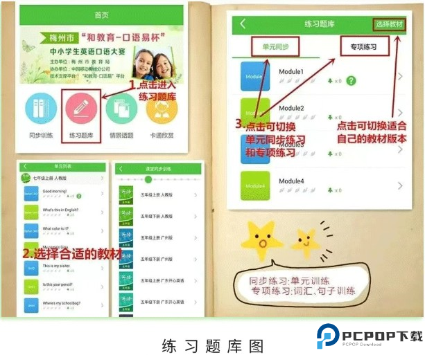 1、课堂教材配套的听力练习往往需要下载软件,在进行练习的时候非常不方便,口语易中的“同步训练”功能就能很好解决这个问题。
