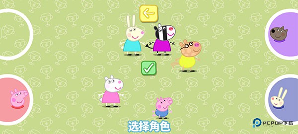 1、启动小猪佩奇运动会中文版,在语言选项中选择「简体中文」,点击右下角对号完成设置。