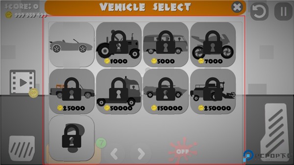 3、以及按黄色按钮可以选择车的款式,如果你有足够多的金币的话: