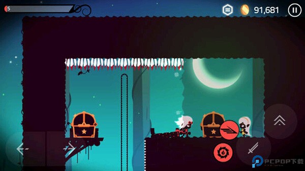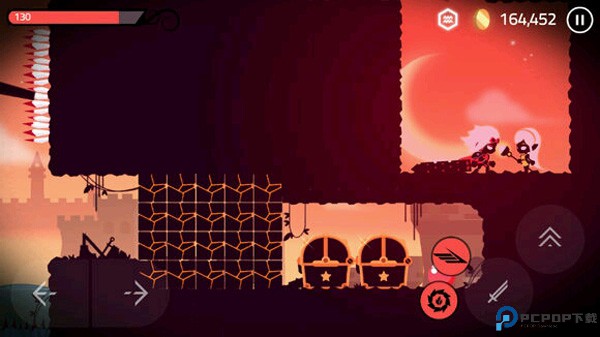 游戏采用了虚拟按键的操作方式,玩家直接屏幕左下角的方向键即可控制骑士的移动,而在屏幕的右下角则分别列着跳跃键以及攻击键,操作起来还是十分简单了,而在设置当中玩家可以自己去设定各个虚拟按键的位置,这一点还是非常人性化的,玩家可以根据自己的操作习惯进行设定。
