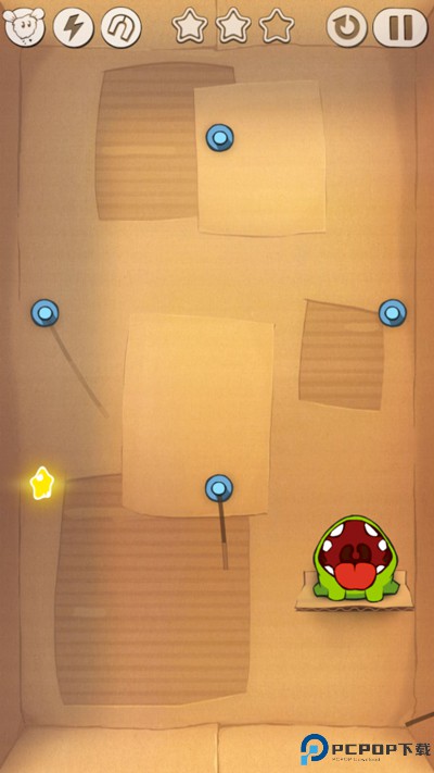 2、若糖果不知所终(即离开游戏屏幕范围),这关便不算完成。若糖果能进入怪物的嘴巴,这关便完成,同时下一关也将解锁。