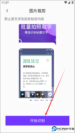 4、裁剪完成后,直接点击“开始识别”,等待数秒即可成功识别;