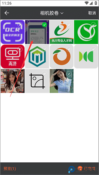 2、以图片识字功能为例,进入相册页选择需要识别的图片(一次可选多张图片),选择完成后点击右下角的“已完成”即可;