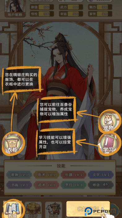5、解锁养成系统,你可以向结识的老师们学习技能,培养宠物等。