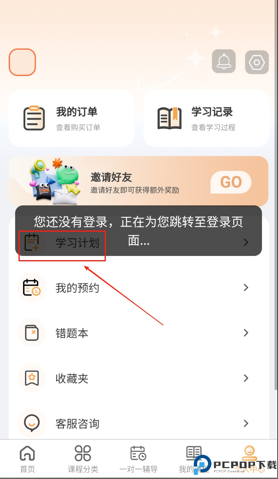 3、学习计划设置,在个人中心设定每日刷题量并开启进度提醒功能。