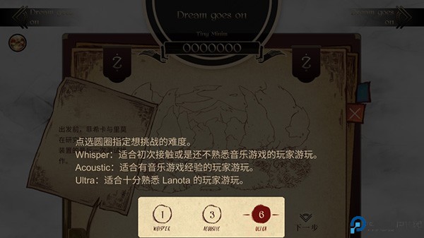 1、进入调律诗篇测试版游戏后观看一段剧情后就可以按照游戏页面指示进行旅行了,一开始就是跟随地图上的标志来选择目的地