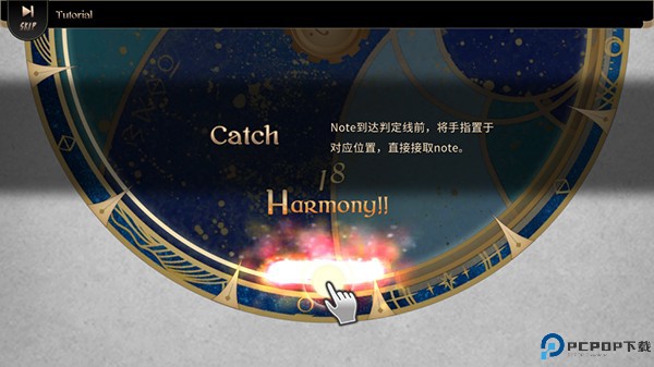 7、Note到达判定线前,将手指置于对应位置,直接接取note
