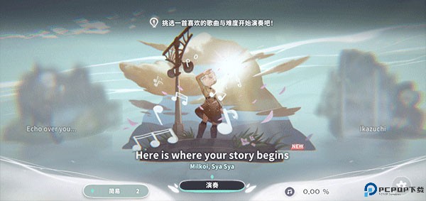 3、每完成一个故事章节就可以解锁一个新的歌曲,左下角是难度提示,点击演奏。