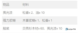 木筏材料:100 贝壳杉木 + 300 椰木 + 30 坚固绳子 + 5 轮胎