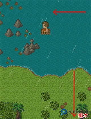 7、要钻头去哪找?跑主岛右上角那片密实草堆划船进入,瞄准右边大椰树射一箭放倒它。割开周边草丛,钻头就藏在那里。