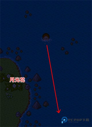 月光花采集要在夜晚!去 D 区海滩找 1 朵,或游到左侧小岛采 5 朵