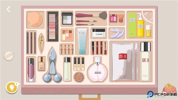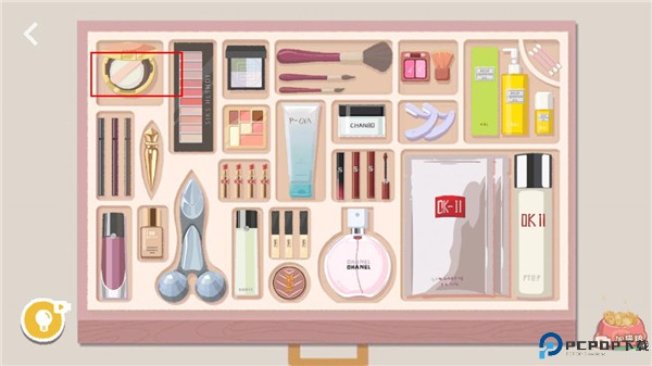 3、所有化妆品放进去之后,剩下粉扑无处安放,点击粉饼盒子打开。