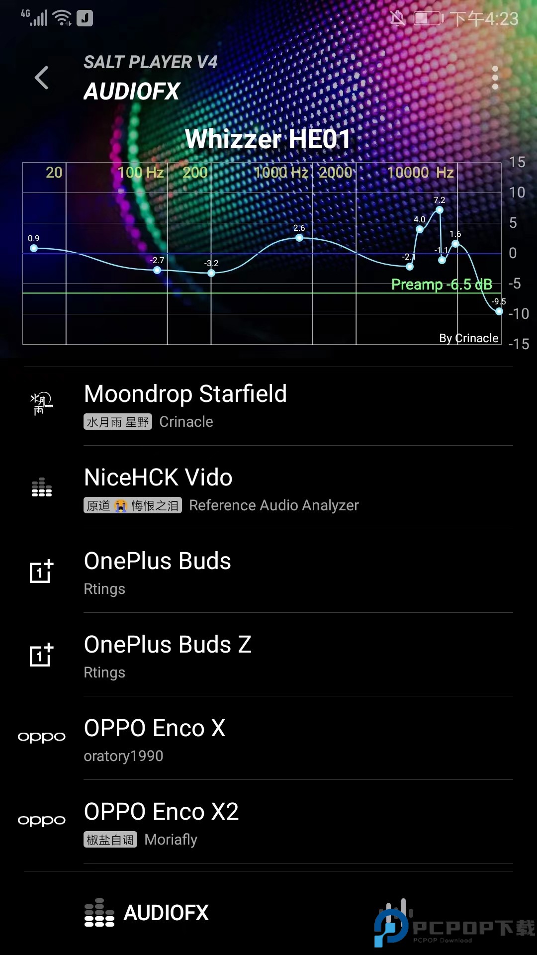 7、在均衡器界面,用户可以自行选择低音、清澈、APPle AirPods、水月雨、OPPO等不同的音频输出来体验音乐效果,
