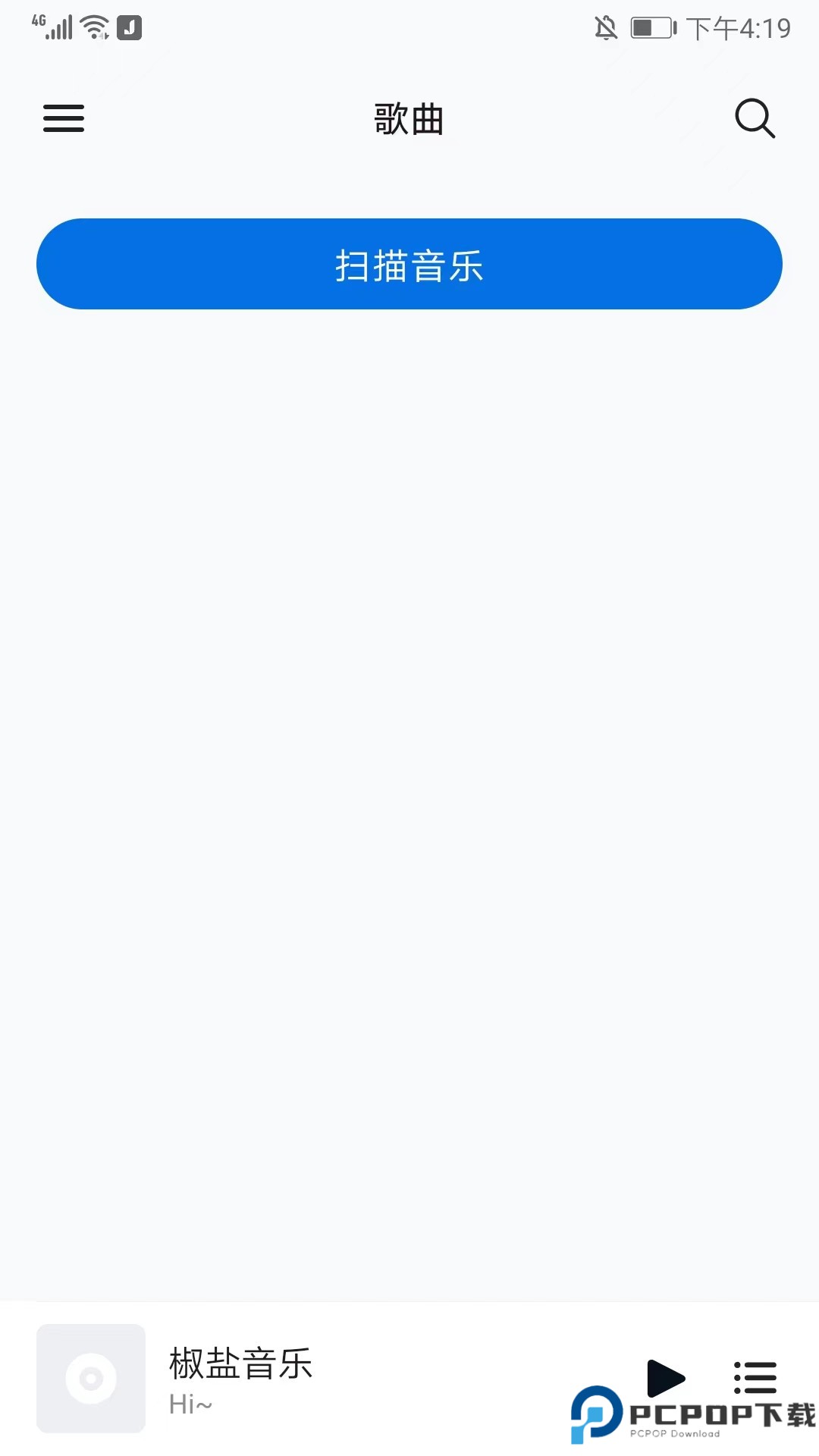 4、进入歌曲界面,我们可以扫描当前设备中的所有音乐,也可以通过右上角的【放大镜】图标进行音乐搜索,